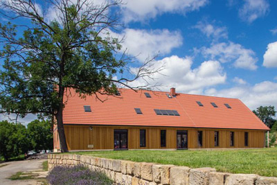 Jako srdce celého designu permakulturní farmy provozujeme inspirativní prostor pro setkávání, kreativitu, učení a cvičení těla i ducha.